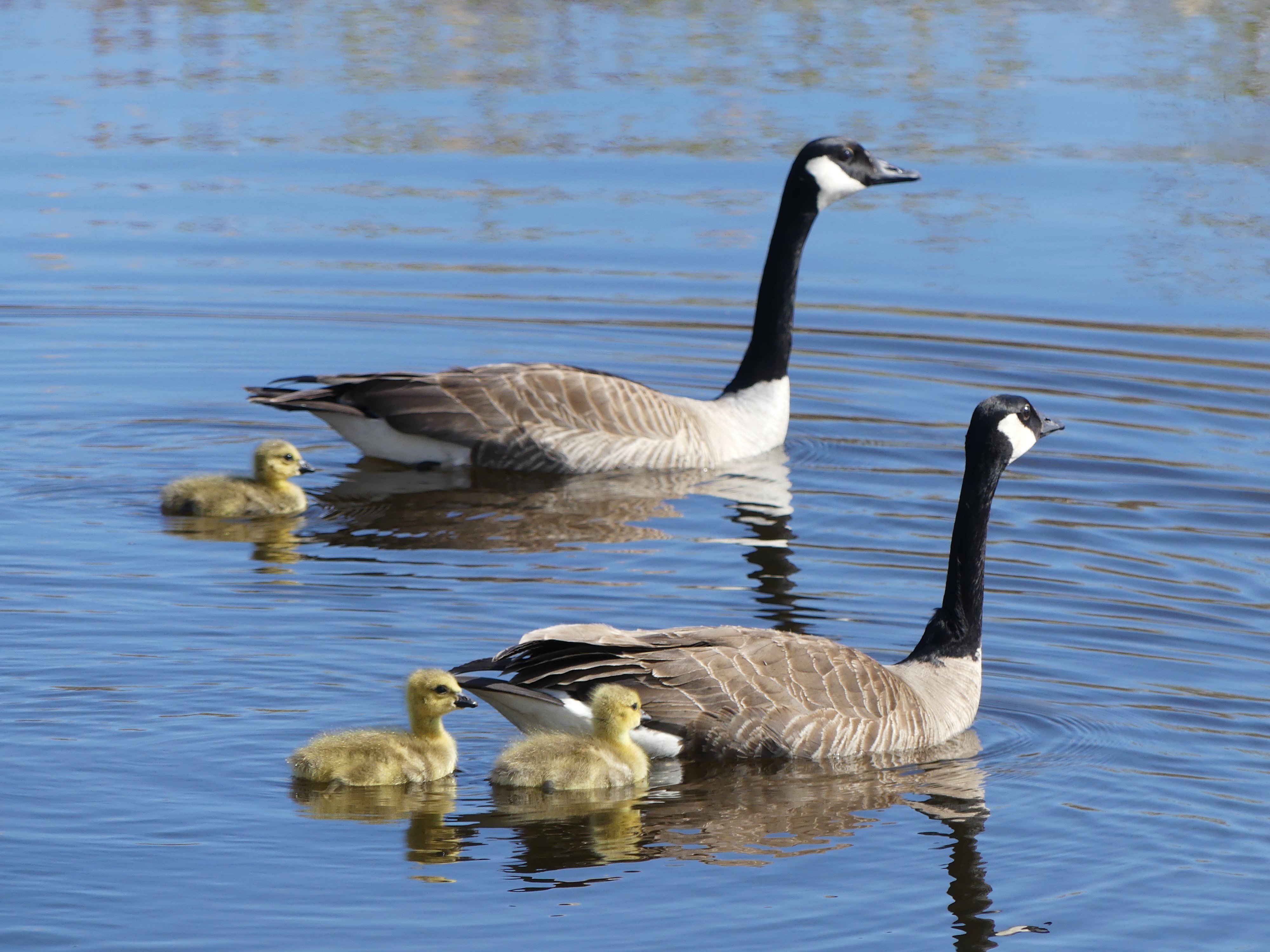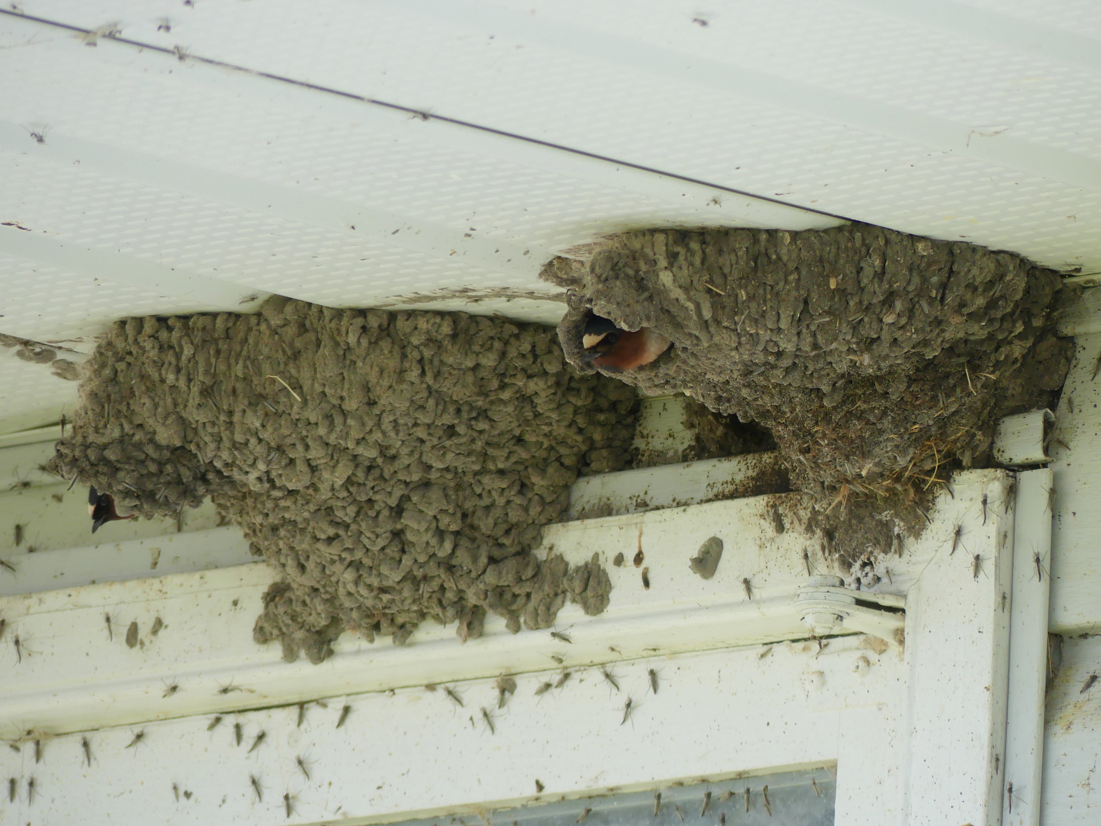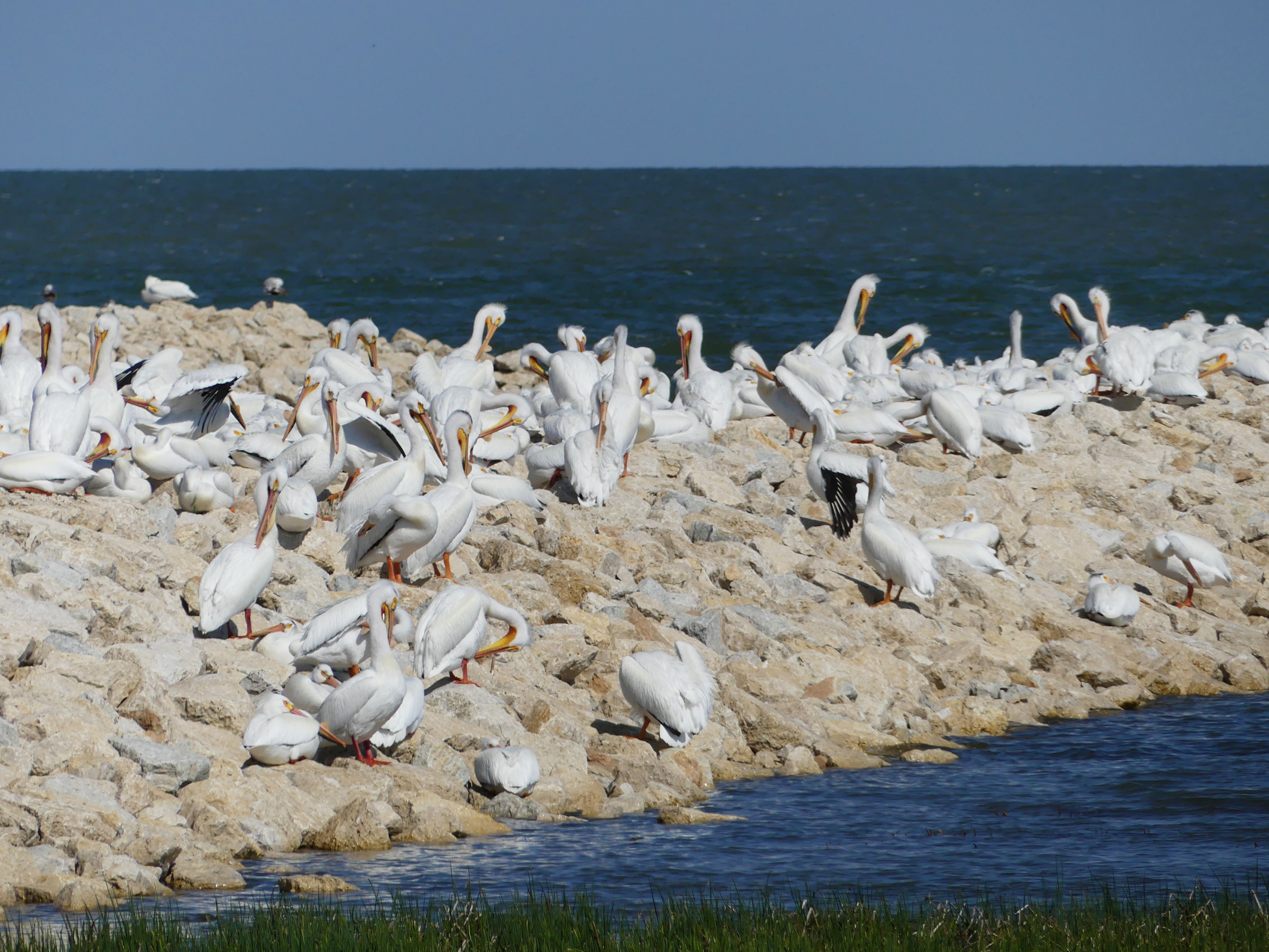 It was lovely to observe so many different behaviours and songs all in the same vicinity. Wrens scurrying around in tall vegetation, various blackbird species singing on their territories, goslings paddling next to their parents, sandpipers and plovers running long the lake shores. It was an incredible sight to see so many American White Pelicans, some in groups on the water foraging in synchrony, a cooperative strategy for herding fish. Another neat sight of grouped birds are Cliff Swallows, crowding around wet spots on the ground to scoop mud in their mouths while their wings flutter behind their backs, then hurrying back to their nest site to continue sculpting their nests. What a busy endeavor to make their nesting structures one mouthful at a time!