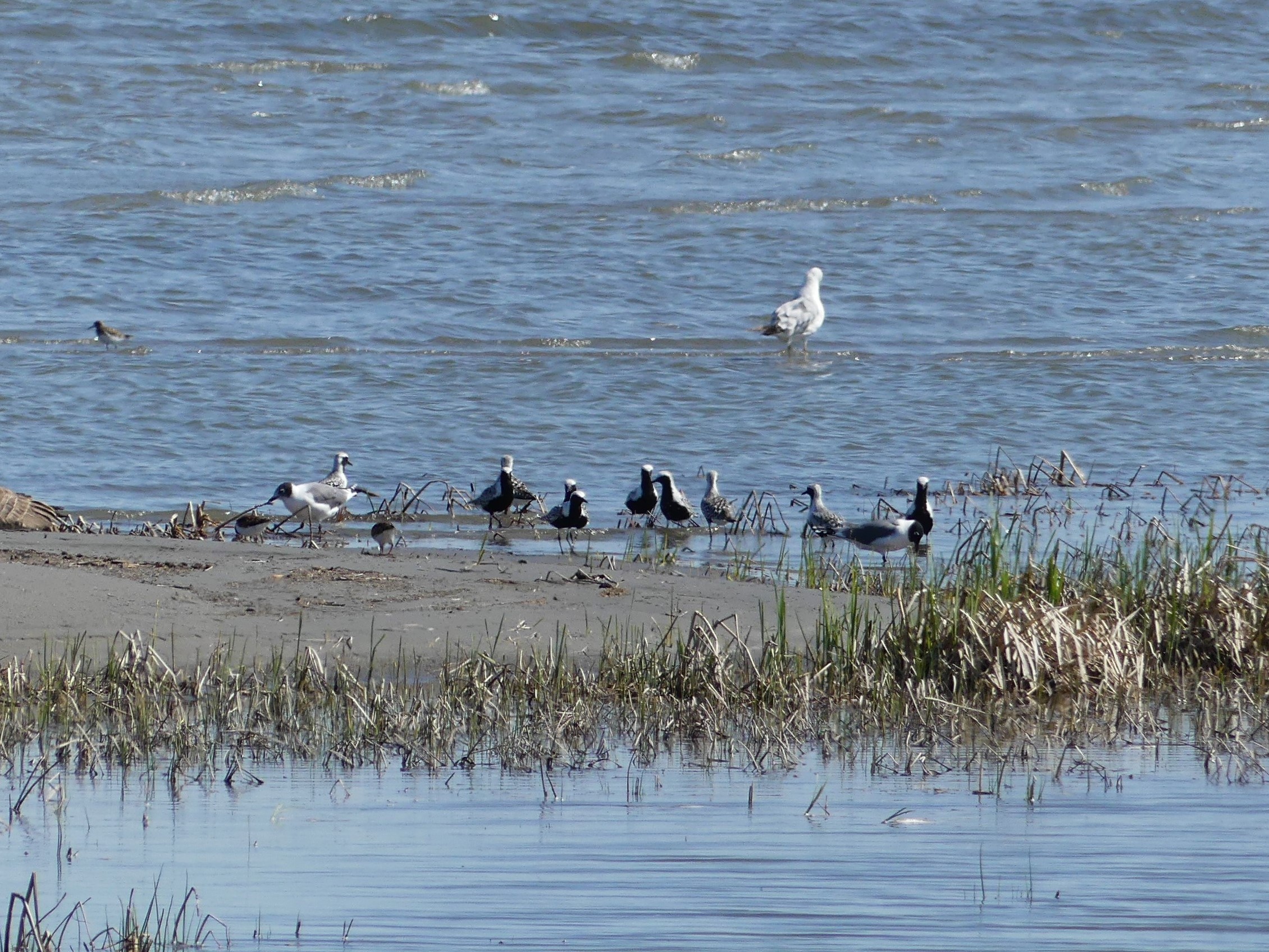 The productivity at this location makes for wonderfully high bird activity – in total that weekend I observed 72 bird species! I birded the Saturday morning with bird expert Cal Cuthbert, who has taught me so much about the birds of Manitoba and showed me all the great birdy spots of the marsh. This time of year there are still migrants passing through, including some warblers and sandpipers, while many other birds are already in the middle of their breeding activities. I highly recommend visiting this area for birding, it was one of my favorite birding days of my stay in Manitoba so far. While most buildings along the beach are private cottages, there is also a campground that people can use for visiting more than a day.