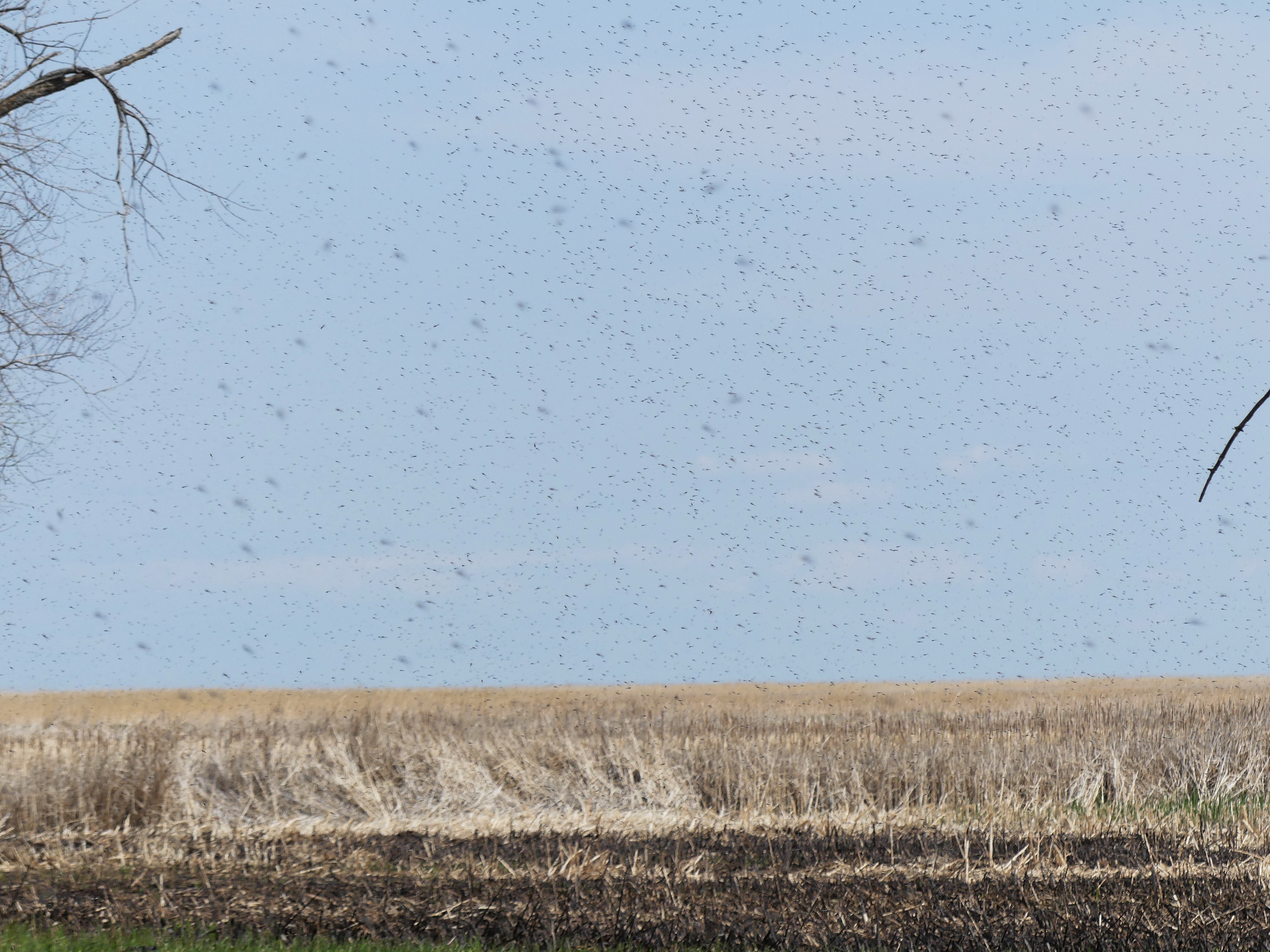 One of the large biomasses in this area is the huge abundance of midges (chironomids), clouds of them swarming in the skies, and covering buildings and plants. When walking through grasses or other vegetation, hundreds more of these midges emerge like a layer of fog. It was hard to avoid getting any between my glasses, or accidentally inhaling them. Thank goodness these midges didn’t bite! Though regarding biting bugs, there were tons of ticks – I ended up with a total of ~70 ticks, still pulling them out of my hair as I was driving back to Winnipeg.