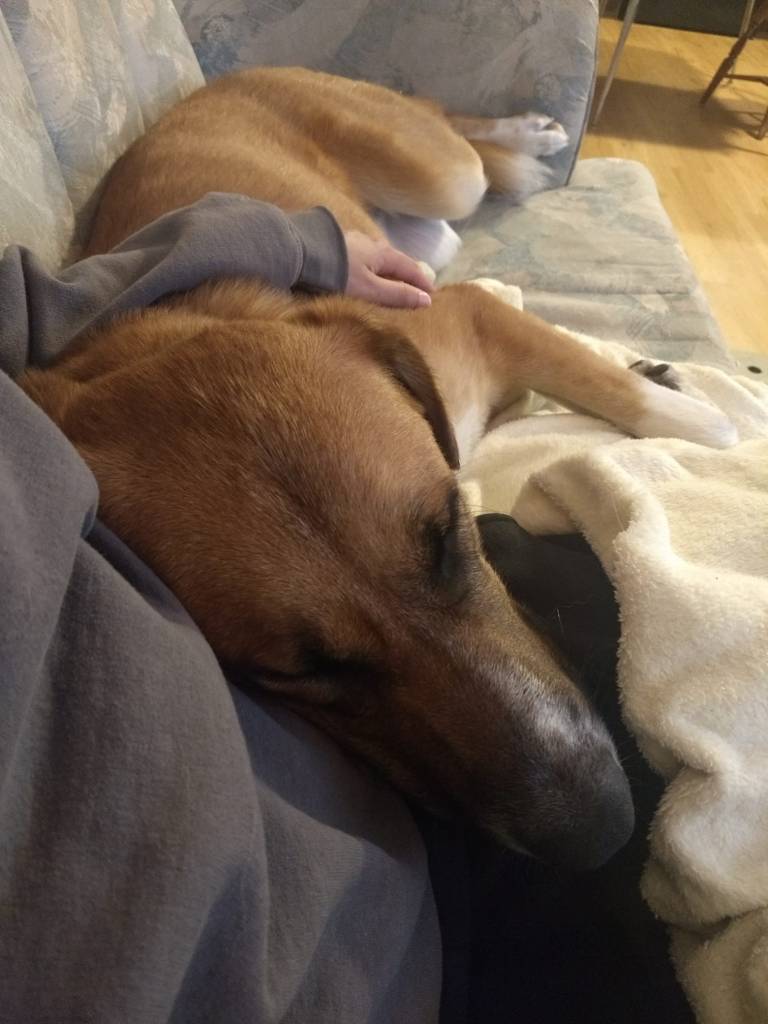 She has come a long way from when we first got her, as she was a young adolescent without much prior training and direction. We found ourselves with a giant 60lb puppy on our hands who would nip, bite, and jump when excited, and unleash booming barks that shook the apartment building when she didn’t want to be home alone. (We live on the third floor, and we could hear her from outside by our car!) She was a very happy, excitable pup, loving everybody, but also just started to transition to a life indoors and practicing proper manners. The first few months had a lot of rough moments, since her impulse control was horrible – chomping on our hands when going for a treat, lunging at every new person or dog, and bouncing off the walls with excitement when meeting new people. With massive rips and holes in my clothes, scars on my arms and hands from her bites, on some of these earlier days I was dreading taking her out for walks. Her excitement bites on walks were so out of hand in the beginning, that we temporarily used a muzzle on her to protect ourselves. If you meet her now though, you’d think she is a completely different dog! With guidance from a positive reinforcement dog trainer, and lots of daily effort and time working with Mocha, she has become more settled, better with her impulse and excitement control, grown accustomed to our routines, and understands that we always come back home. It’s only been six months and she’s already progressed super well in both outdoor and indoor situations. We can go on nice loose leash walks without any bites, and our neighbors say that they hardly hear a peep from her! There’s still a lot of work and training to do with her, as she still falls back to her puppy mouthing occasionally and doesn’t always have her listening ears on, but everything is moving forward overall and she continues to be such a good girl. I’m very proud of us! 🐕 ❤️