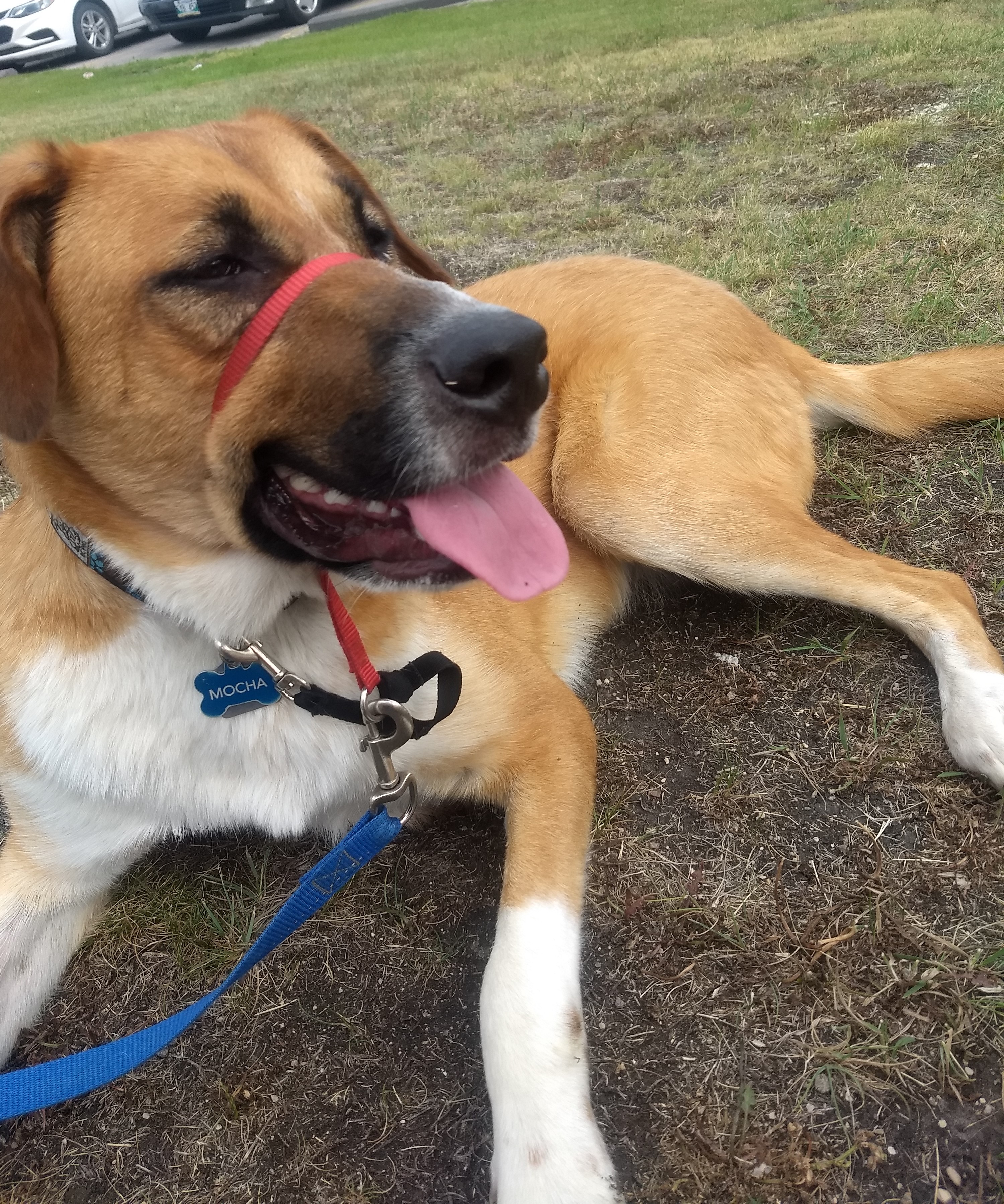 Our furry goofball joined our family about half a year ago, and adopting her was the best decision in my life. Matt and I adopted Mocha from Manitoba Mutts, and I think she’s a mix of Labrador retriever, boxer, and collie. We’ll do one of those dog DNA tests some day and we’ll see what breeds make such an interesting mix that is Mocha! In any case, she’s the sweetest and happiest pup, with a helicopter tail and heart full of love.