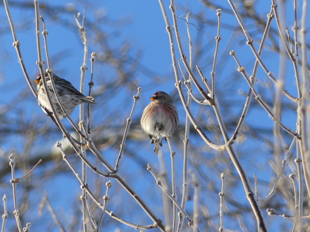 The quantity of birds here in the winter are significantly low compared to the spring and summer, and also compared to other areas on the continent. In my experience with Christmas Bird Counts in California, it would be no surprise for single group of people to get over 50 species on a good a day (even 60 or 70 in some areas), whereas here in Manitoba it’s amazing to get above 20! Of course in the spring and summer, the productivity here is booming and makes up for the wintertime calmness. I cannot deny that I prefer birding in the summer over the winter days, but I find the special winter birds to be incredibly beautiful and rather hard-core to brave the weather and even thrive in it. The Snowy Owls are a gem to see outside the city of Winnipeg, perched on power poles, hay bales, or just out in an open field. I love the flocks of Snow Buntings (I find them to be so cute!), and finches like the Pine Grosbeaks and Common Redpolls. A lifer bird for me this winter was the Bohemian Waxwing, a lovely bird that forms social flocks and eats berries together. With the remaining months of this winter and upcoming years, I still have birds on my list to see for the first time (hopeful for a Northern Hawk Owl!).