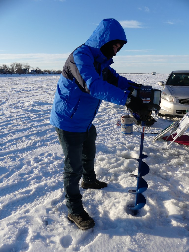 Matt and I drove my car once on Lake Manitoba, to go ice fishing with our good friend John. Since this was our first time doing this, we were advised to keep our seat belts off in case the ice broke. Though we knew the ice was safe enough, we followed through with the tip anyway. The fishing was unsuccessful that day, but I hear that people can get fish like walleye, pike, perch, and crappie. It’s a very popular activity here, seen by numerous tents on lakes and rivers that fishermen set up to shelter from the wind while they sit by their fishing hole.