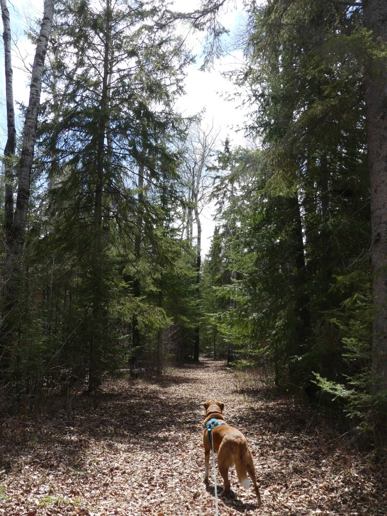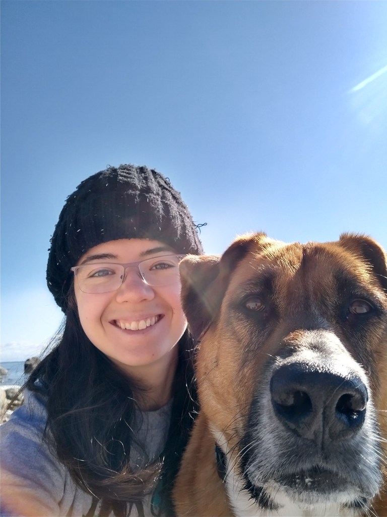 During my outdoor trips with my dog Mocha, my focus is on her while she explores, runs, swims, and whatever she likes (within reason). My birding-specific trips are usually at a slower pace, me strolling around birdy spots and sometimes staying in one location for an hour to observe and photograph warblers or ducks in a hot spot. Since I can’t resist bringing Mocha with me everywhere I go, I am learning how to combine these types of trips together. Birding with Mocha is a different experience than birding solo, but our adventures together are more valuable to me than closer views or photographs of birds. I’m juggling binoculars, camera, and leash of a squirrel-chasing dog all at once, and often enough I get blurry photos and shaky videos where I’m calling out “Mocha, wait!!” as I get tugged during my attempt to record a yellow-rumped warbler in perfect lighting that’s now flapping away. Depending on where we are, I’ll use a 50ft leash to give her freedom while still maintaining some control of where she goes, plus this lets me allocate some of my attention on the birds. With the leash tied around my wrist, I keep both my hands “free” for my birding gear, and off we go on on our adventure checking out wildlife tracks and pee-mail, rolling in the mud, and me attempting to capture some nature photography.