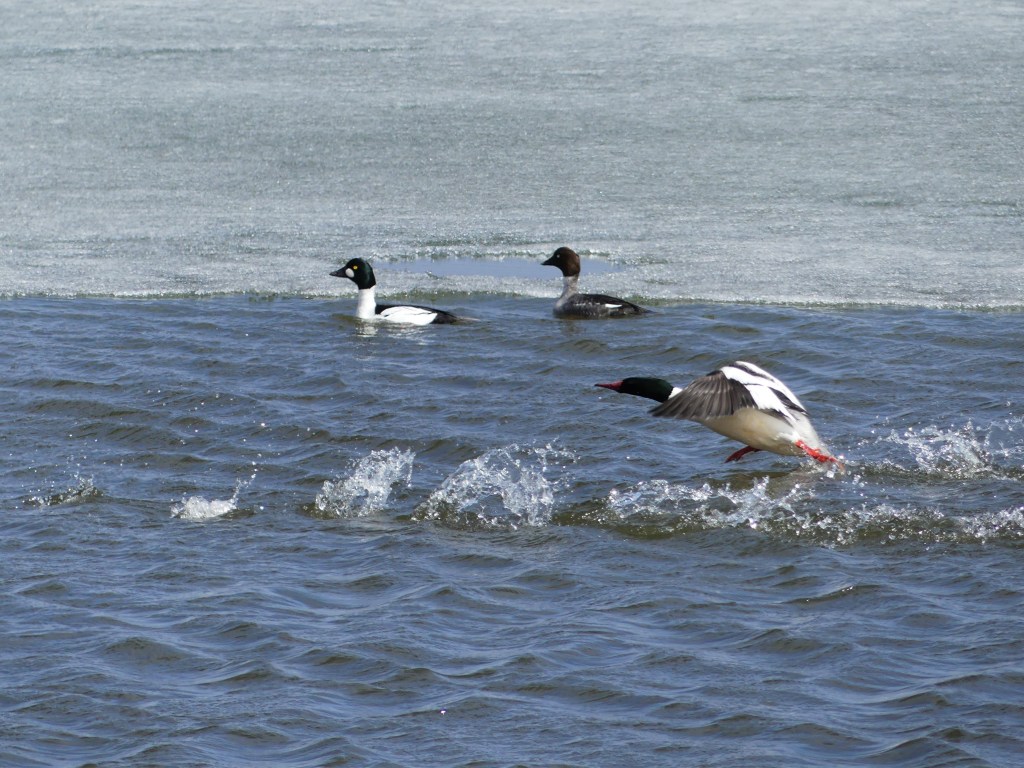 Common Goldeneye pair & Common Merganser